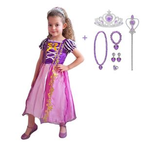 Дългокосата красавица от детското филмче, държана в плен от зла вещица е заслепена от любовта си към принца, но разбира се и той от нея. Как няма да се влюбиш в този прекрасен глас, в тази красива принцеса с дълга, руса коса? Тази история пленява сърцата на момиченцата, те усещат трепет и възхищение пред красотата на принцесата и бленуват да са като нея. Зарадвай момиченцето си и му подари цял комплект от рокля с вещи или аксесоари на принцесата, така че то да сбъдне мечтата си -да прилича на нея!
